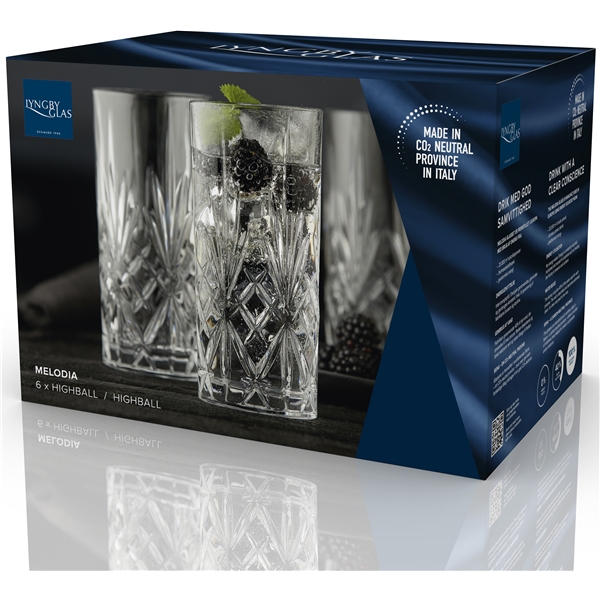 Juomalasi korostaa kaikkia klassisia drinkkejä ja värikkäitä cocktaileja, kun kaunis kuvio heijastaa ympäristön valoa ja varjoja. Kaunis lasisarja on valmistettu Euroopassa. Lasit valmistetaan sähköisissä uuneissa, jotka käyttävät aurinkokeräimistä saatavaa uusiutuvaa energiaa, ja tuotannon ylijäämälämpöä käytetään uudelleen muualla tehtaalla. Käytetyt raaka-aineet ovat ehdottomasti korkeinta laatua. Kestää konepesun. K:15 cm.