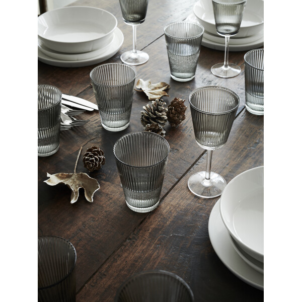 Kata pöytä tyylikkäästi panostamalla klassisen ilmeen yksinkertaisuuteen ja toimivuuteen. Grand Cru Nouveau 36 cl -lasi on suupuhallettu ja kaunista ja korkealaatuista tummanharmaata savunväristä lasia. Se on toimiva ja pinottava juomalasi, joka on sekä klassinen että moderni - ne kohottavat pöytäasetelmaa sekä arjessa että juhlavammissa tilaisuuksissa. Urat luovat eloisan mutta minimalistisen ilmeen ja hienostuneen optisen värileikin, kun valo taittuu lasissa. Koristeellisuuden lisäksi ovat urat myös käytännölliset ja tarjoavat hyvän otteen niin pienille kuin suurillekin käsille. Grand Cru Nouveau on tyylikäs esimerkki moderniin asumiseen sopivasta toiminnallisesta lasimuotoilusta, joka sopii hyvin yhteen muiden kaapissasi mahdollisesti olevien Grand Cru -tuotteiden kanssa. Muotoilu tasapainottaa vaivattomasti esteettisyyden ja toiminnallisuuden, ja suupuhallettu savunvärinen lasi korostaa sarjan omaleimaista jokapäiväistä ylellisyyttä ja toiminnallista tyylikkyyttä tyylillä, rakenteella ja värillä.