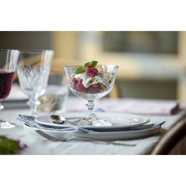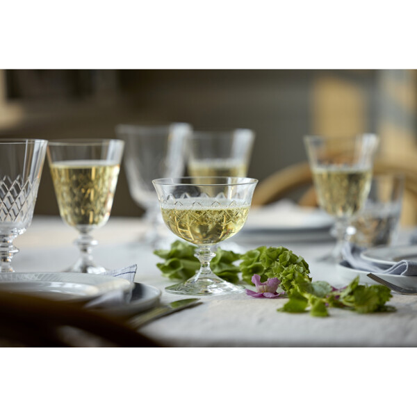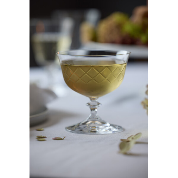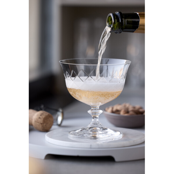 Eaton-samppanjalasi, 28 cl, tulkitsee uudelleen klassisen timanttikuvioinnin ikonisesta Eaton-lasista, jonka Lyngby Glas loi 1960-luvulla. Muotoilun ajaton estetiikka yhdistää klassisen viehätyksen moderniin tyyliin ja tuo täysin ainutlaatuisen tunnelman pöytään. Kristallilasista valmistettu Eaton tarjoaa erinomaista kirkkautta ja kestävyyttä, mikä tekee lasista nautinnollisen käyttää – olipa kyseessä sitten kodikas arki-illallinen tai juhlava ilta ystävien kanssa. Lasin lyhyt jalka antaa lisävakautta ja tekee siitä mukavan pitää kädessä. Eaton valmistetaan Euroopassa suurella tarkkuudella kehittyneen tuotantoprosessin kautta, joka sisältää koneellisen hionnan ja kiillotuksen. Tuloksena on korkea kirkkaus ja eksklusiivinen viimeistely, joka korostaa lasin yksinkertaista eleganssia.