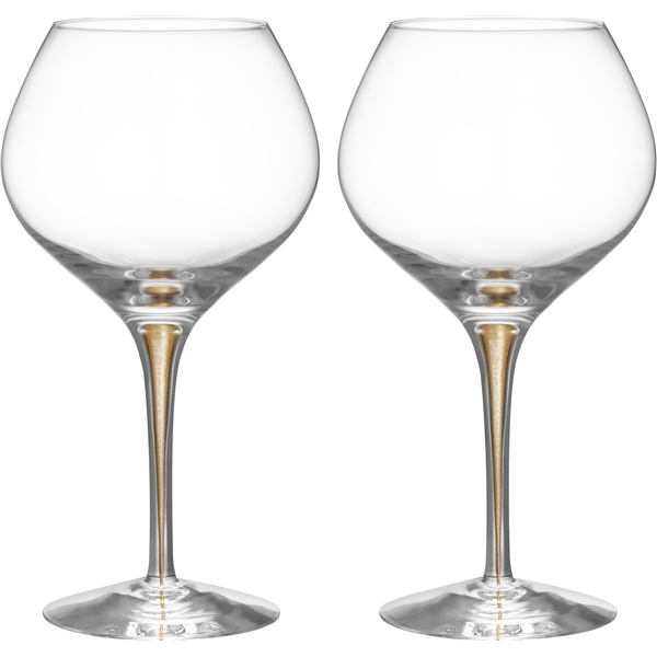Meidän käsityöläisemme ja Erika Lagerbielke ovat jo pitkään yrittäneet täyttää Intermezzolle ominaisen kuplan kultaisella pigmentillä. Vihdoin se on siellä, upotettuna kristallinkirkkaaseen lasiin - matta kullanhohtoisena hohtavana pisarana. Bouquet-lasiin mahtuu 70 cl, ja se sopii erinomaisesti kaikille punaviineille, joissa on raikkaan hedelmäinen maku, rypäleestä riippumatta. Ylisuuri, leveä malja uttaa viiniä kehittymään. Lasi on suupuhallettu Ruotsissa ammattitaitoisten lasinpuhaltajiemme toimesta. Suunnittelija: Erika Lagerbielke