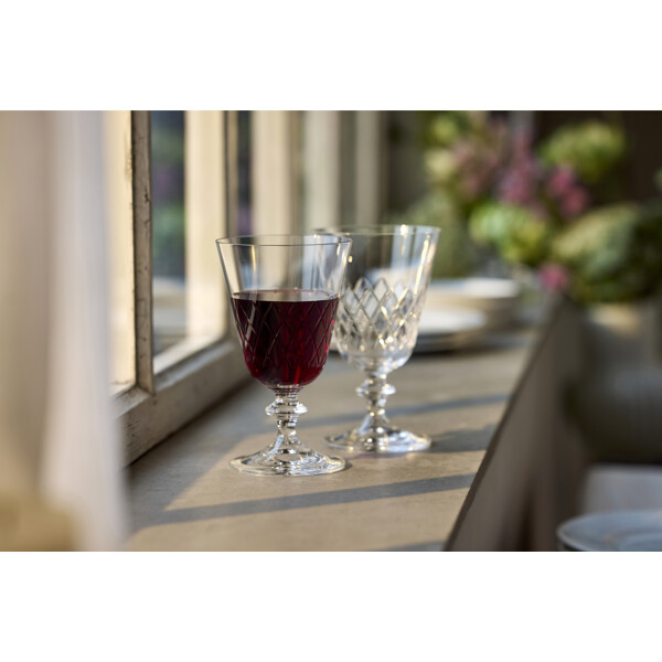 Eaton punaviinilasi, 26 cl, tulkitsee uudelleen klassisen timanttikuvioinnin ikonisesta Eaton-lasista, jonka Lyngby Glas loi 1960-luvulla. Muotoilun ajaton estetiikka yhdistää klassisen viehätyksen moderniin tyyliin ja tuo täysin ainutlaatuisen tunnelman pöytään. Kristallilasista valmistettu Eaton tarjoaa erinomaista kirkkautta ja kestävyyttä, mikä tekee lasista nautinnollisen käyttää – olipa kyseessä sitten kodikas arki-illallinen tai juhlava ilta ystävien kanssa. Lasin lyhyt jalka antaa lisävakautta ja tekee siitä mukavan pitää kädessä. Eaton valmistetaan Euroopassa suurella tarkkuudella kehittyneen tuotantoprosessin kautta, joka sisältää koneellisen hionnan ja kiillotuksen. Tuloksena on korkea kirkkaus ja eksklusiivinen viimeistely, joka korostaa lasin yksinkertaista eleganssia.