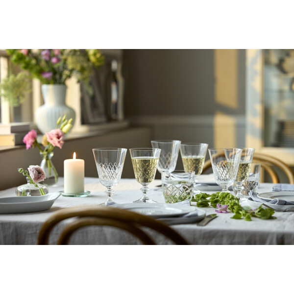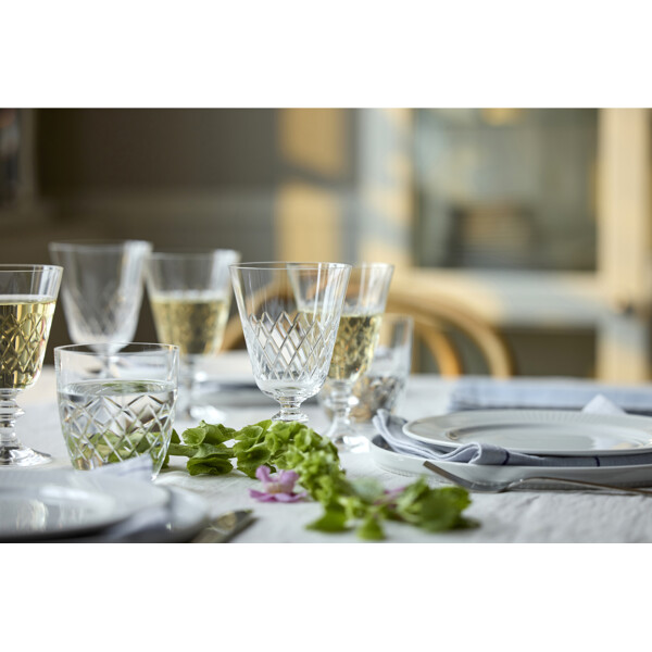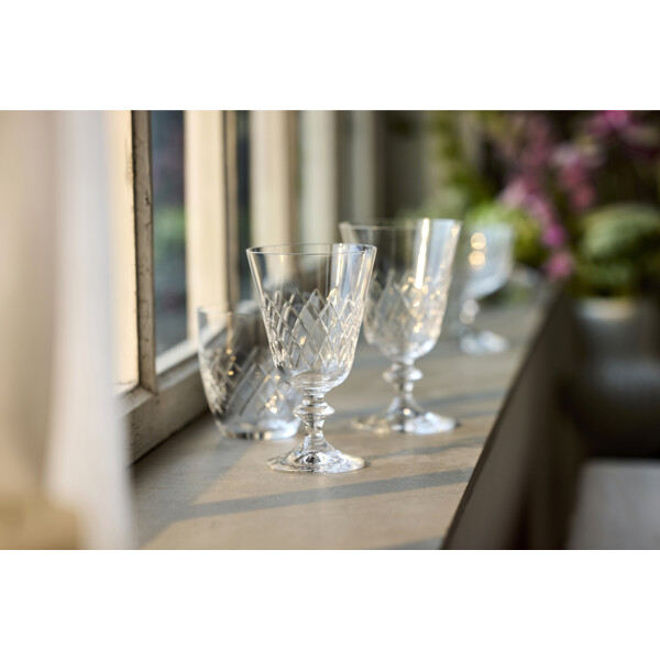 Eaton valkoviinilasi, 23 cl, tulkitsee uudelleen klassisen timanttikuvion ikonisesta Eaton-lasista, jonka Lyngby Glas loi 1960-luvulla. Muotoilun ajaton estetiikka yhdistää klassisen viehätyksen moderniin tyyliin ja tuo täysin ainutlaatuisen tunnelman pöytään. Kristallilasista valmistettu Eaton tarjoaa erinomaista kirkkautta ja kestävyyttä, mikä tekee lasista nautinnollisen käyttää – olipa kyseessä sitten kodikas arki-illallinen tai juhlava ilta ystävien kanssa. Lasin lyhyt jalka antaa lisävakautta ja tekee siitä mukavan pitää kädessä. Eaton valmistetaan Euroopassa suurella tarkkuudella kehittyneen tuotantoprosessin avulla, joka sisältää koneellisen hionnan ja kiillotuksen. Tuloksena on korkea kirkkaus ja eksklusiivinen viimeistely, joka korostaa lasin yksinkertaista eleganssia.