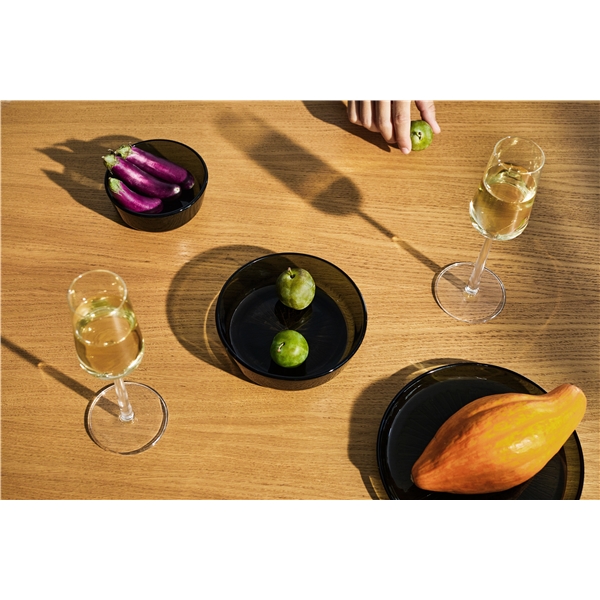 Iittalan Essence lautanen pohjakuvioinnilla prässätystä tummanharmaasta lasista. Sopii tarjoiluastiaksi tai ruokalautaseksi. Lautanen sopii hienosti yhdistettäväksi valkoiseen posliiniin tai kirkkaaseen lasiin, esim. Iittalan Essence-laseihin. Iittala-sarjan on muotoillut Alfredo Häberli. Kestää konepesun.