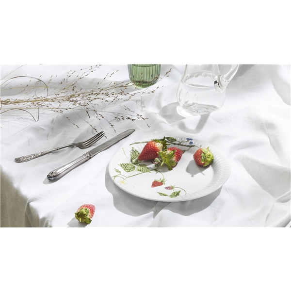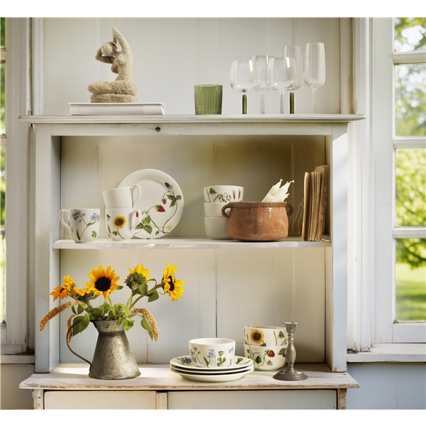 Hammershøi Summer -sarjan Kählerilta voit melkein tuntea auringon säteet ja lempeän kesätuulen, kun katat kahvia ja jotain hyvää terassille, parvekkeelle tai kesämökille. Kuten sarjan muki ja kulho, on tämäkin koristeltu erilaisilla kesäisillä kuvioilla. Lautanen on kaunis lisä sarjan muihin osiin – myös eri teemoilla – ja se täydentää iloisen ja viihtyisän kesätunnelman pöydällä samalla kun saat nauttia Kählerin käsintehtyjen designperinteiden aidosta nostalgiasta. On helppo kuvitella lautanen kesäklassikoiden, kuten mansikkakakun, puutarhan rapean salaatin tai annoksen, jossa on uusia perunoita ja runsaasti ruohosipulia, pohjaksi. Kuvioiden luoja on taiteilija Rikke Jacobsen, joka on tehnyt ne Hammershøi-astiaston olemassa oleviin osiin, jotka on suunnitellut Hans-Christian Bauer. Kauniilla vesiväreillään hän luo yksityiskohtaisia kuvioita, joissa kasvisto ja eläimistö ovat keskeisessä roolissa ja jotka vangitsevat luonnon ja vuodenaikojen tunnelman ympärillämme.