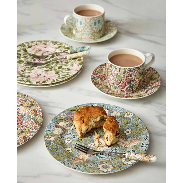 Tämä on posliinisarja, joka on luotu juhlistamaan Morris & Co:n 160-vuotisjuhlaa. Upea paletti vanhoja kuvioita William Morrisin arkistosta luo hienon sarjan, joka sopii useimpiin koteihin! Mukana olevat kuviot ovat Strawberry Thief, Blackthorn, Golden Lily ja Honeysuckle.