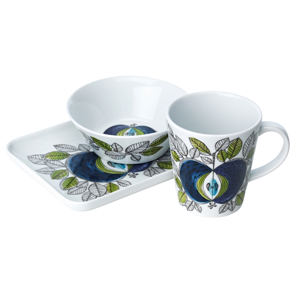 Sigrid Richterin kysytty muotoiluklassikko vuodelta 1960 on saanut kunnian ilmestyä jälleen juhlavuosituotteena. Halkaistu sininen omena osoittaa selkeästi kuin Rörstrandin retroastiasto tuntuu oikealta myös nykypäivänä. Silloin, kuten nykyäänkin, pääset joka kerta pöydän ääreen istuessasi askeleen lähemmäs paratiisia.