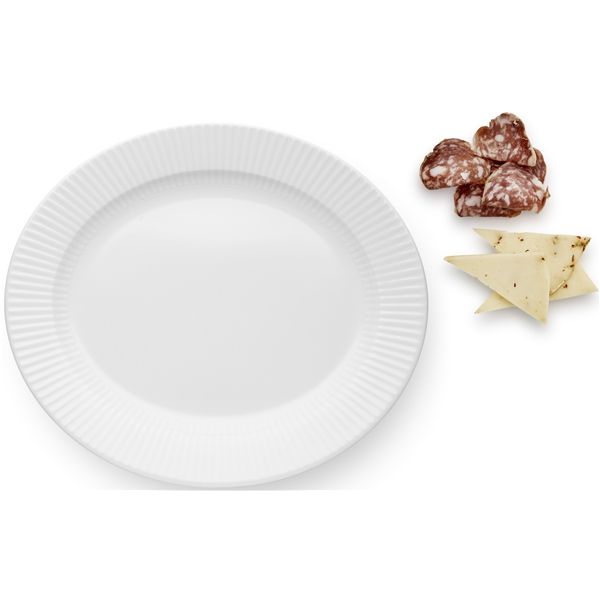 Kata kauniisti näiden hienojen ja pelkistetyn ovaalien lautasten avulla, kuuluen sarjaan Legio Nova Eva Triolta. Eva Trio on Tanskan kokkimaajoukkueen sponsori ja muotoiluprosessissa on inspiraatio saat heidän ruokataiteestaan ja huolellisuudesta, jonka he pistävät käsityöhönsä. Tämän takia kehystyy lautasen keskusta elegantein sahalaidoin, ruokaa korostaen. Yhdistä kaikki kokoelman lautaset yhteen saadaksesi tyylikkään ruokapöydän kattauksen.