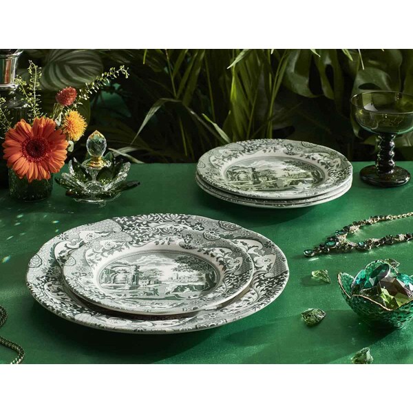 Heritage Green Italian -lautanen on klassinen lautanen, joka yhdistää eleganssin ja toimivuuden ajattomaan ilmeeseen. Kuvio – joka on peräisin Spoden ikonisesta Blue Italian -sarjasta – on saanut täällä hienostuneen uuden tulkinnan syvän vihreässä sävyssä, joka antaa kattaukselle luonnetta ja harmoniaa.