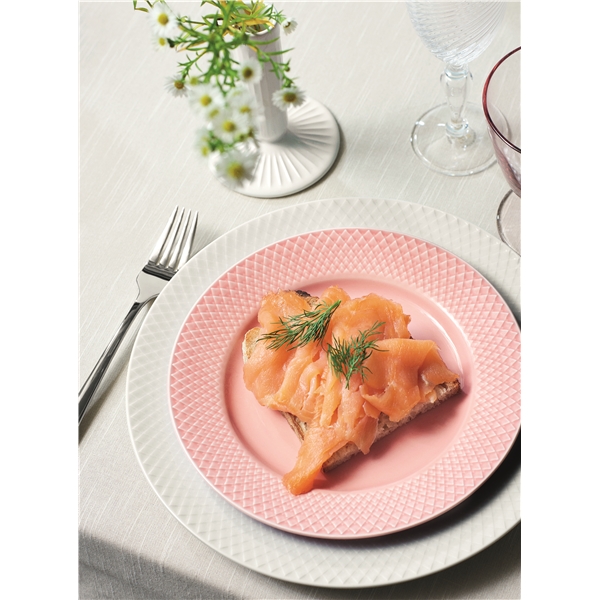 Lyngby Porslinin Rhombe Color-sarja tarjoaa äärettömät luovat mahdollisuudet. Värit on valittu yhdessä designkaksikko Still Lifen kanssa. Klassinen Rhombe-kuvion juontaa juurensa Lyngby Porslinin arkistoon ja sai alkunsa jo 1961. Roosan värinen lautanen on herskyvän värinen yksityiskohta kattauksessa ja ja se sopii kauniisti yhdistettäväksi muihin Rhombe-sarjan astioihin.