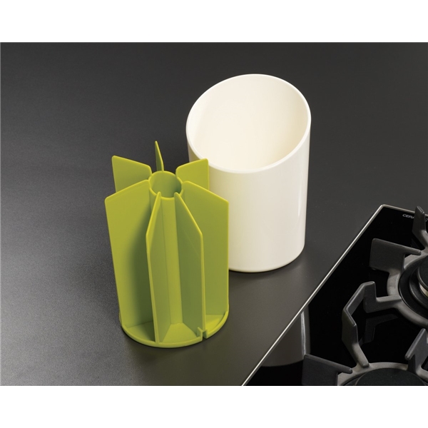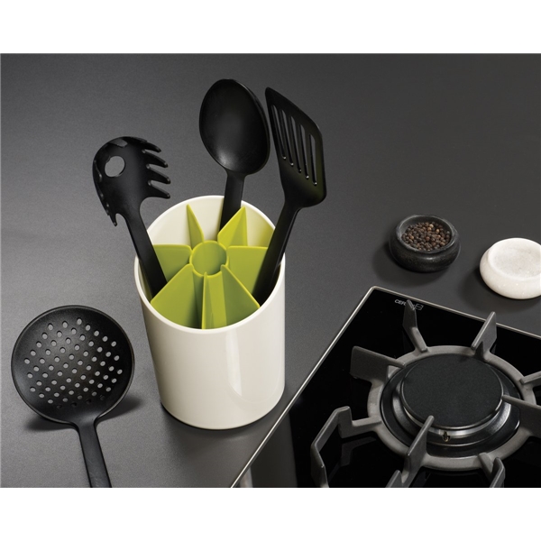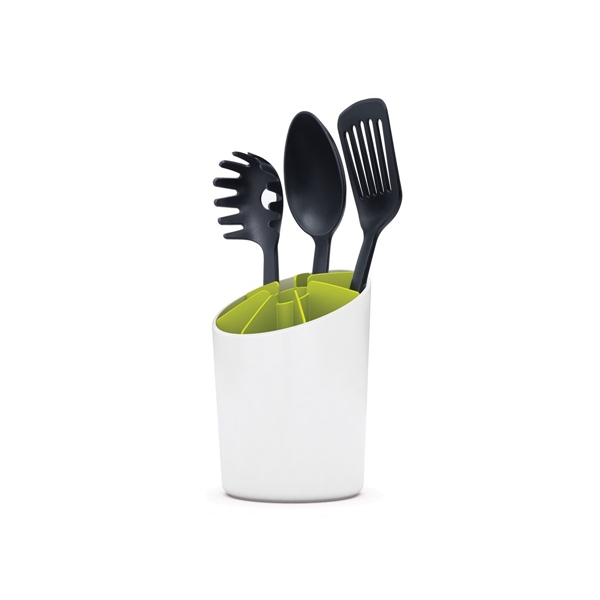 b>Muotoilu: Joseph Joseph Vuonna 2003 päättivät kaksosveljekset Antony ja Richard Joseph yhdistää voimansa ja aloittaa Joseph Josephin, päämääränään luoda toiminnallisia, ongelmanratkaisevia kotitaloustuotteita. Useat tuotteet on palkittu kansainvälisillä muotoilupalkinnoilla.Tämä tarvikepidike Joseph Josephilta sisältää 8 taskua erilaisille keittiötarvikkeille. Sen vinoonleikatun reunan ansiosta mahtuu siihen erilaiset lastat, paistovälineet ja vispilät PIdike ja sisäosa kestävät konepesun.Koko: Halkaisija, 12 cm Korkeus, 19,5 cm Materiaali: Muovi/nyloni