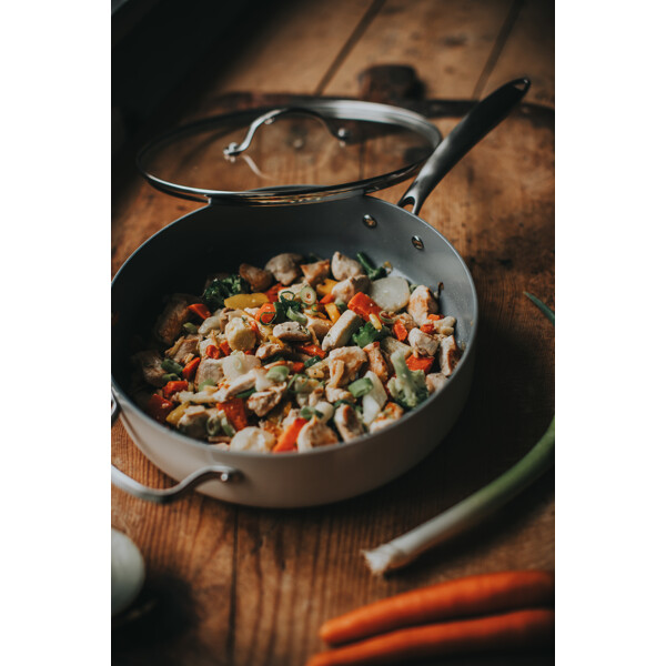 Tilava traktoriapannu 4,7 litraa Ø28 cm KFFC keraamisella pinnoitteella (sukupolvi 8), joka tarjoaa todella hyvän non-stick-efektin ilman PFAS:ia. Valmistettu paksusta alumiinista, jossa on kovaanodisoitu ulkopinta ja ruostumaton pohja - sopii kaikille liesille, mukaan lukien induktio. Mukana tulevan lasikannen kanssa se on täydellinen sekä arkiaterioille että juhlaillallisille.