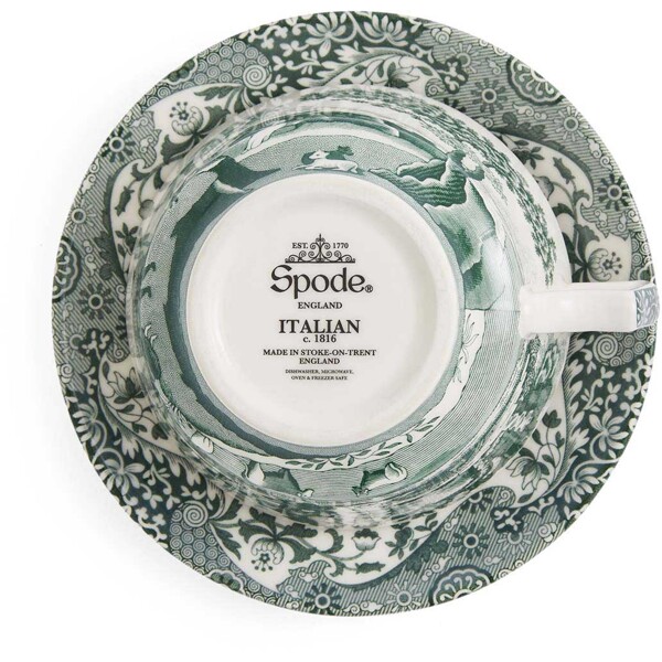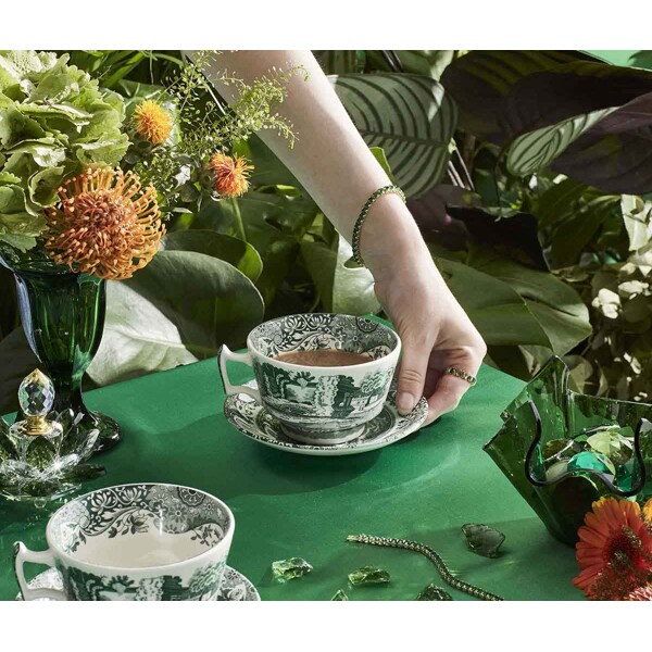 Aloita päiväsi eleganssilla Heritage Green Italian Aamiaisastiastolla & Lautasella 0,28 L.