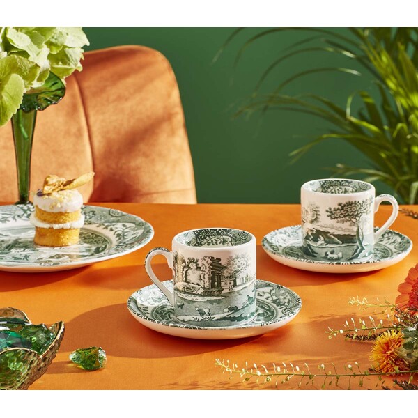 Heritage Green Italian Kahvikuppi ja lautanen Spode