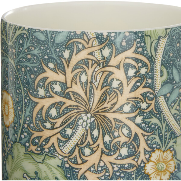 Kaunis posliinimuki Morris & Co:lta, joka sopii täydellisesti aamiaiseen sängyssä tai iltapäiväkahville. William Morris (vuodet 1834-1896) oli taiteilija, filosofi ja poliittinen ajattelija, mutta myös erinomainen ja vaikutusvaltainen suunnittelija, joka Morris & Co:n kautta pystyi suunnittelemaan aikansa muodikkaimpia ja jännittävimpiä tapetteja ja kankaita - yli vuosisata myöhemmin hänen suunnittelunsa on yhä yhtä suosittua.