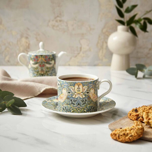 Morris & Co Teekuppi ja Lautanen kuuluvat posliinisarjaan, joka on luotu juhlistamaan Morris & Co:n 160-vuotisjuhlaa. Upea paletti vanhoja kuvioita William Morrisin arkistosta luo todella hienon sarjan, joka sopii useimpiin koteihin! Täydennä sarjan muilla tuotteilla, kuten teekannulla ja kakkulautasella.