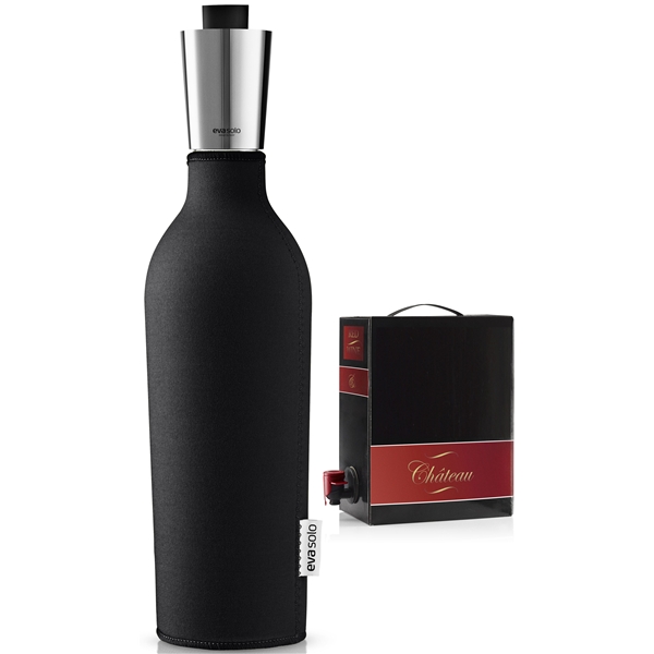 Eva Solon Viinikarahvi sopii esim. laatikkoviinin tarjoiluun. Se antaa eleganting viinikattauksen ja on tipaton. Siihen mahtuu yksi viinipullollinen. Eristävä neopreenisuoja pitää esim. valkoviinin viileänä. Karahvi on kevyt täyttää ja kätevä silikonikorkki pitää hyvin juoman karahvissa kuljetuksen aikana.