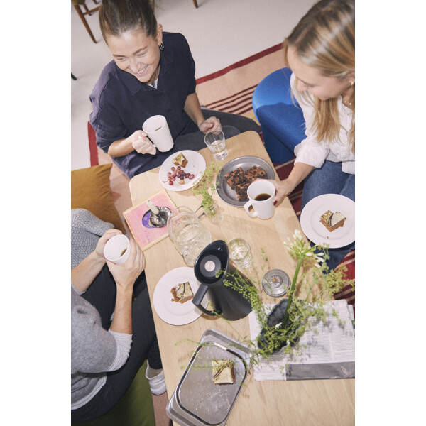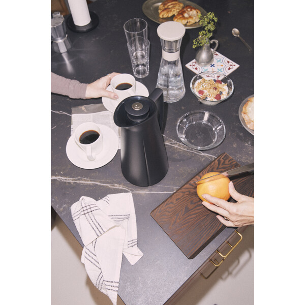 Testivoittanut Grand Cru -termoskannu on nyt saatavana elegantin himmeänharmaana, joka sopii trendikkääseen tehdasvaikutteiseen tyyliin. Kätevä korkki avautuu nappia painamalla ja takaa juoman pysymisen lämpimänä, koska sinun ei tarvitse avata korkkia kokonaan ja estät siten kylmää ilmaa joutumasta kannuun sisälle. Hyvä lahjaidea kahvipaketin kera. Kiiltäväksi hiotusta teräksestä valmistettu Grand Cru -termoskannu on luksusversio Grand Crun juhlavuoden termoskannusta. Siinä on kätevä painalluksella avautuva korkki, josta on helppo kaataa. Se ei tiputtele ja pitää hyvin lämmön. Hyvä lahjaidea erityistilaisuuksiin – tai sinulle, joka arvostat huolella valmistettua tanskalaista muotoilua. Teräksen ja mustanvärisiä termoskannuja on valmistettu rajallisesti Grand Crun -20-vuotisjuhlavuoden kunniaksi ja niitä on myynnissä vain rajallinen määrä. Design: Rosendahl Läpimitta: 17 cm. Korkeus: 28,4 cm. Leveys: 14,9 cm. Syvyys: 17,1 cm. Materiaali: Kiiltäväksi hiottua terästä ja lasiosa, muut kannut muovia ja lasisella sisäosalla. Ei konepesun kestävä.