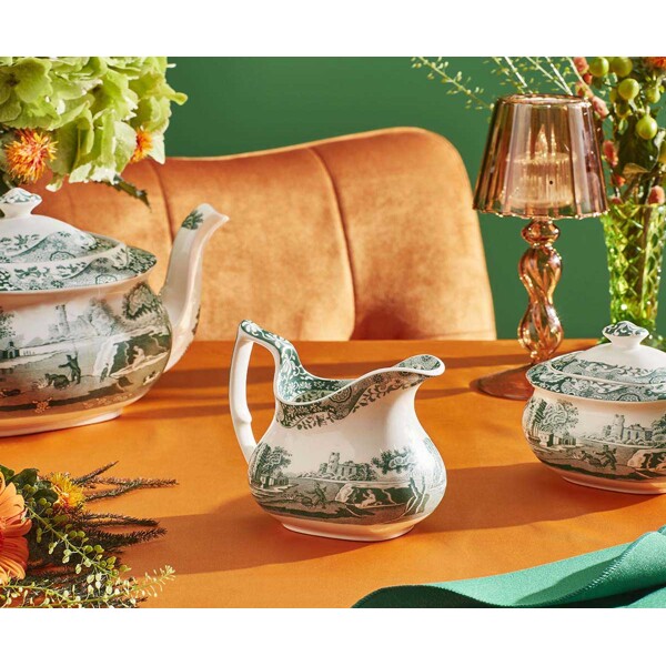 Heritage Green Italian Kermakannu 0,22 L yhdistää käytännöllisen toiminnallisuuden klassiseen eleganssiin. Se kantaa Spoden ikonista kuviota – tunnettu Blue Italianista – mutta syvässä, uudessa vihreässä sävyssä, joka antaa hienostuneen ilmeen sekä aamiaispöydässä että jälkiruokatarjoilussa.Inspiraationsa italialaisesta maaseudusta, kehystettynä 1700-luvun Imari Oriental -kuviolla, kannusta tulee luonnollinen lisä kuppiin, lautaseen ja muihin sarjan osiin. Pehmeästi pyöristetty muoto ja mukava kahva tekevät tarjoilusta sujuvaa, kun taas kuvio korostaa koko kattauksen.Valmistettu Stoke-on-Trentissä, Englannissa – käsityön, historian ja aidon brittiläisen posliinikulttuurin perintö.