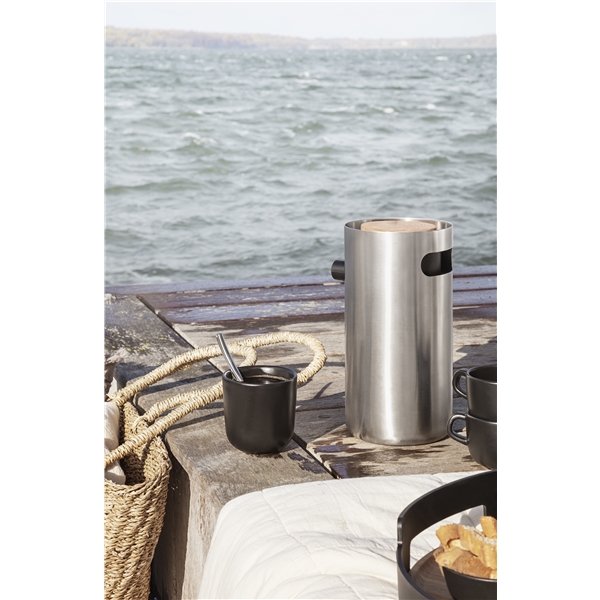 Pumpputermoksessa on kompakti ja minimalistinen muotoilu, mutta siihen mahtuu juomaa peräti 1,8 litraa. Nordic kitchenin kannu sopii hienosti juhliin ja muihin tilaisuuksiin, ja sitä on helppo kantaa integroidun kahvan ansiosta mukaan kokoukseen tai piknikille. Sinun ei tarvitse kiertää ja vääntää mitään – painat vain tammipuista kantta ja kahvi on tarjoilut. Termoskannun huolella muotoiltu pumppusysteemi takaa vähintään 30 000 pumppauskertaa, ja teräspinnoite tekee kannusta erityisen vankan ja pitää kahvin lämpimänä. Tammesta valmistettu kansi huolletaan säännöllisellä öljyämisellä.