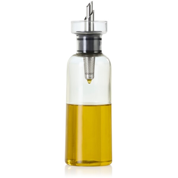 Pullo hienoimmalle oliiviöljylle, maukkaalle kurpitsansiemenöljylle, hienoimmalle etikalle ja paljon muulle. 4-in-1 - Kaadin, tipparengas, automaattinen sulkeminen ja suodatin ruostumattomasta teräksestä. Pullo on valmistettu täysin mauttomasta borosilikaattilasista. Helppo avata ja täyttää suuren täyttöaukon ansiosta.