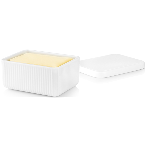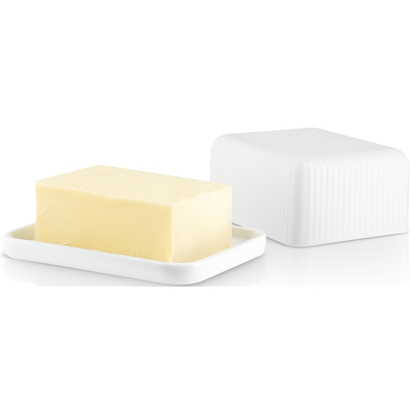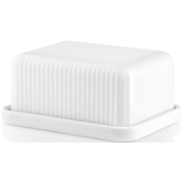 Muotoilu: Eva Solo Tämä voirasia Eva Sololta kuuluu kokoelmaan Eva Trio Legio Nova ja se on valmistettu laadukkaasta posliinista. Sahakuvioinnen kuviointi on innovatiivinen ja raikas, ja rasiaa voi käyttää kahdella eri tavalla. Inspiraatio on saatu klassisesta Legio-astiastosta, joka voidaan hyvin yhdistää uuden sarjan kanssa.Koko: Pituus: 12 cm Leveys: 9,6 cm Materiaali: Posliini