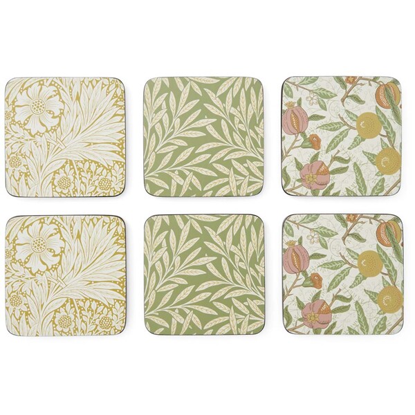 Nämä William Morris & Co:n lasinaluset yhdistävät käytännöllisyyden ajattomaan kauneuteen, ja jokaisessa setissä on erilaisia kuvioita. Lasinalusissa on korkkipohja ja ne ovat lämmönkestäviä, mikä suojaa pintoja tyylikkäästi. Aluset on helppo puhdistaa kostealla liinalla. Tyylikäs ja toimiva lisä jokaiseen kotiin.