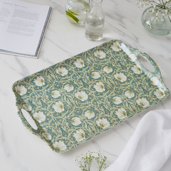 Tuo esiin eleganssin ja tyylin ydin Morris & Co. Spode Pimpernel -tarjottimella. Tämä tilava tarjotin, joka on koristeltu William Morrisin ikonisella Pimpernel-kuviolla pehmeissä pastellisävyissä, tuo hienostuneen kosketuksen sekä muodollisiin illallisiin että rentoihin kokoontumisiin. Täydellinen juomien ja herkkujen tarjoiluun sekä sisällä että puutarhassa, tämä tarjotin luo kutsuvan ilmapiirin. Kestävästä melamiinista valmistettuna se on sekä kestävä että helppo puhdistaa, mikä tekee siitä käytännöllisen mutta tyylikkään lisän kattaukseesi.