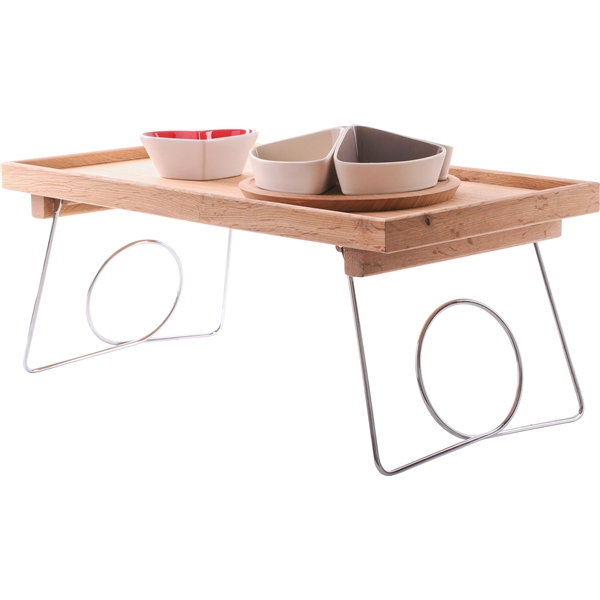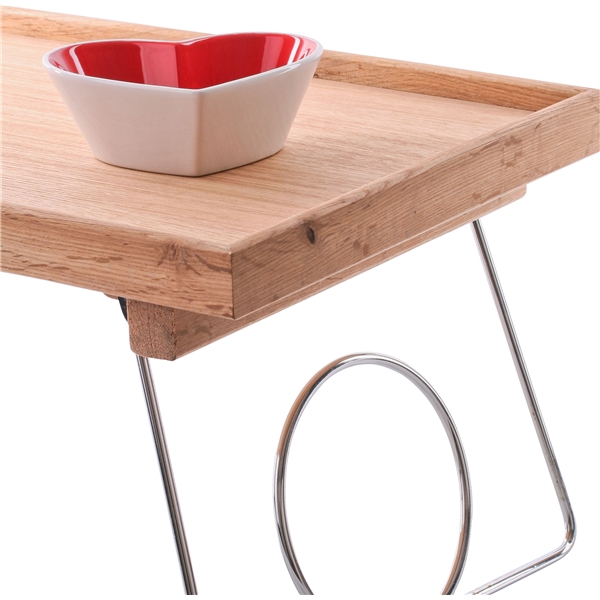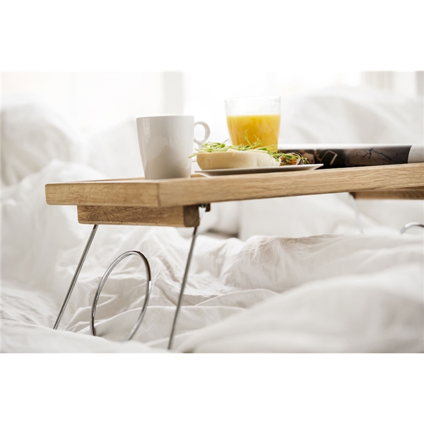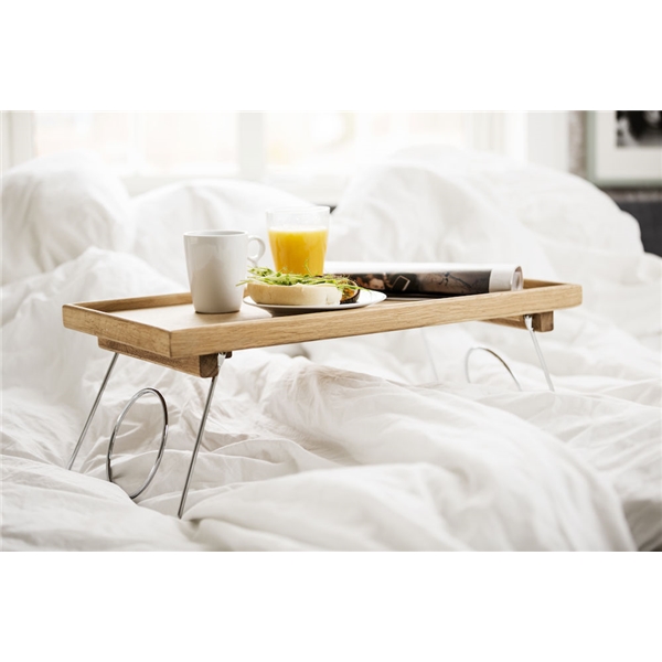 Fiksu tarjotin sänkyyn tammesta Sagaformilta. Kaksi taittuvaa jalkaa joiden avulla tarjotin seisoo tukevasti sängyllä joka mahdollistaa monet ihanat aamiaiset sängyssä. Mitta: 500 x 300 x 245 mm