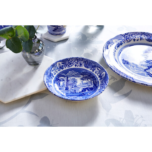Yksityiskohtainen, vanhemman italialaisen maaseudun inspiroima, 1700-luvun Imari Oriental -kehyksellä ympäröity. Blue Italian -aamiaiskulho voidaan täydentää monilla muilla esineillä, kuten posliinilla, tekstiileillä ja tarjottimilla kauniissa ja ajattomassa Blue Italian -kokoelmassa.
