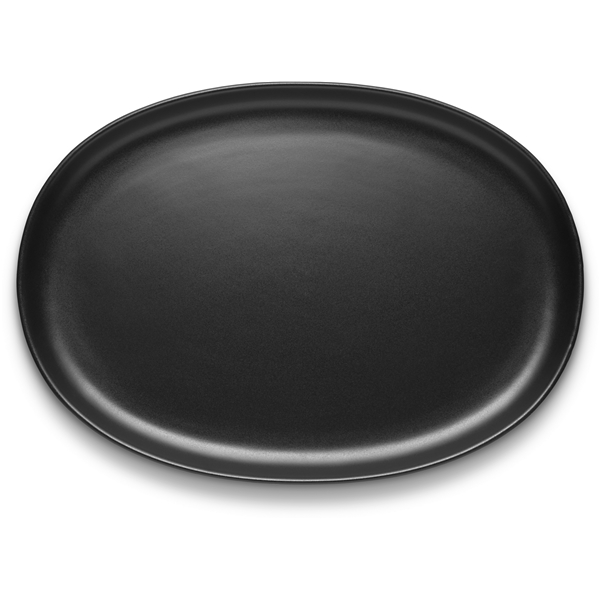 Nordic Kitchenin Eva Solo -sarjan ovaali lautanen mustaa kivitavaraa. Lautanen on yksinkertainen ja tyylikäs ilmeeltään ja se sopii rentoon skandinaaviseen elämäntapaan. Tyylipuhdas tarjoiluvati kestää päivittäistä käyttöä ja kestää sekä astianpesukoneen, pakastimen, uunin ja mikroaaltouunin.