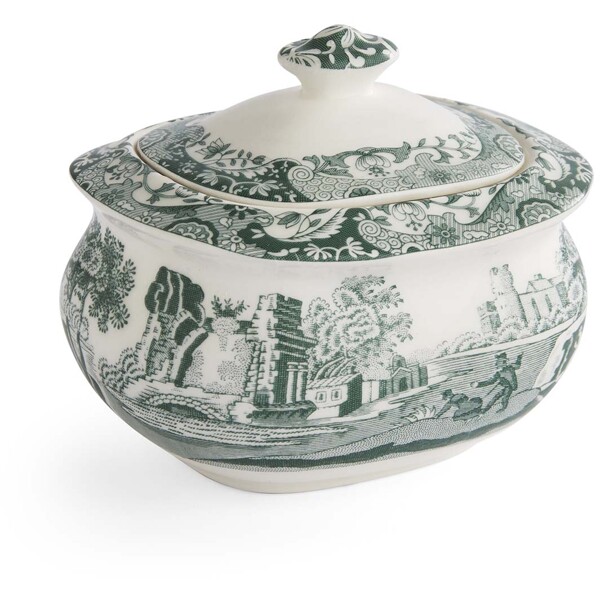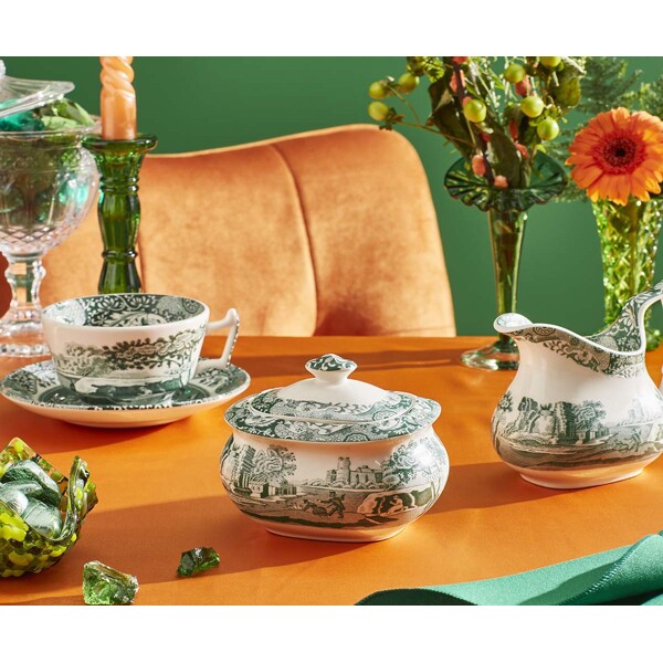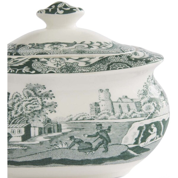 Heritage Green Italian Sokerikulho kannella 0,25 L on viehättävä lisä tee- tai kahvihetkeen. Samalla ikonisella kuvioinnilla kuin Spoden klassinen Blue Italian – tässä elegantissa vihreässä sävyssä – se yhdistää perinteen päivitettyyn väritykseen ja ajattomaan kauneuteen.Kuvio on saanut inspiraationsa viehättävästä italialaisesta maaseudusta ja sitä kehystää 1700-luvun Imari Oriental -kuvio, joka kulkee kulhon reunan ympäri. Käytännöllinen kansi säilyttää sisällön tuoreena, ja kulhon tasapainoinen muoto tekee siitä sekä kauniin että toimivan pöydällä.Valmistettu Stoke-on-Trentissä, Englannissa – missä brittiläistä posliinitaidetta on hiottu sukupolvien ajan.