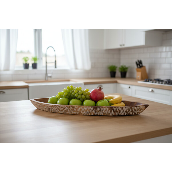 Anna kodillesi ainutlaatuinen, käsityönä valmistettu tyyli tällä hienostuneella käsintehdyllä puukanoottitarjottimella. Huolellisesti Thaimaassa valmistettu, sen tyylikäs veneen kaltainen muoto tuo kauniisti esiin puun luonnollisen syykuvion. Tämä 100% käsintehty ja ympäristöystävällinen luomus on aitoa käsityötä, täydellinen lisäämään kotiisi kestävää kauneutta ja monipuolista toiminnallisuutta.