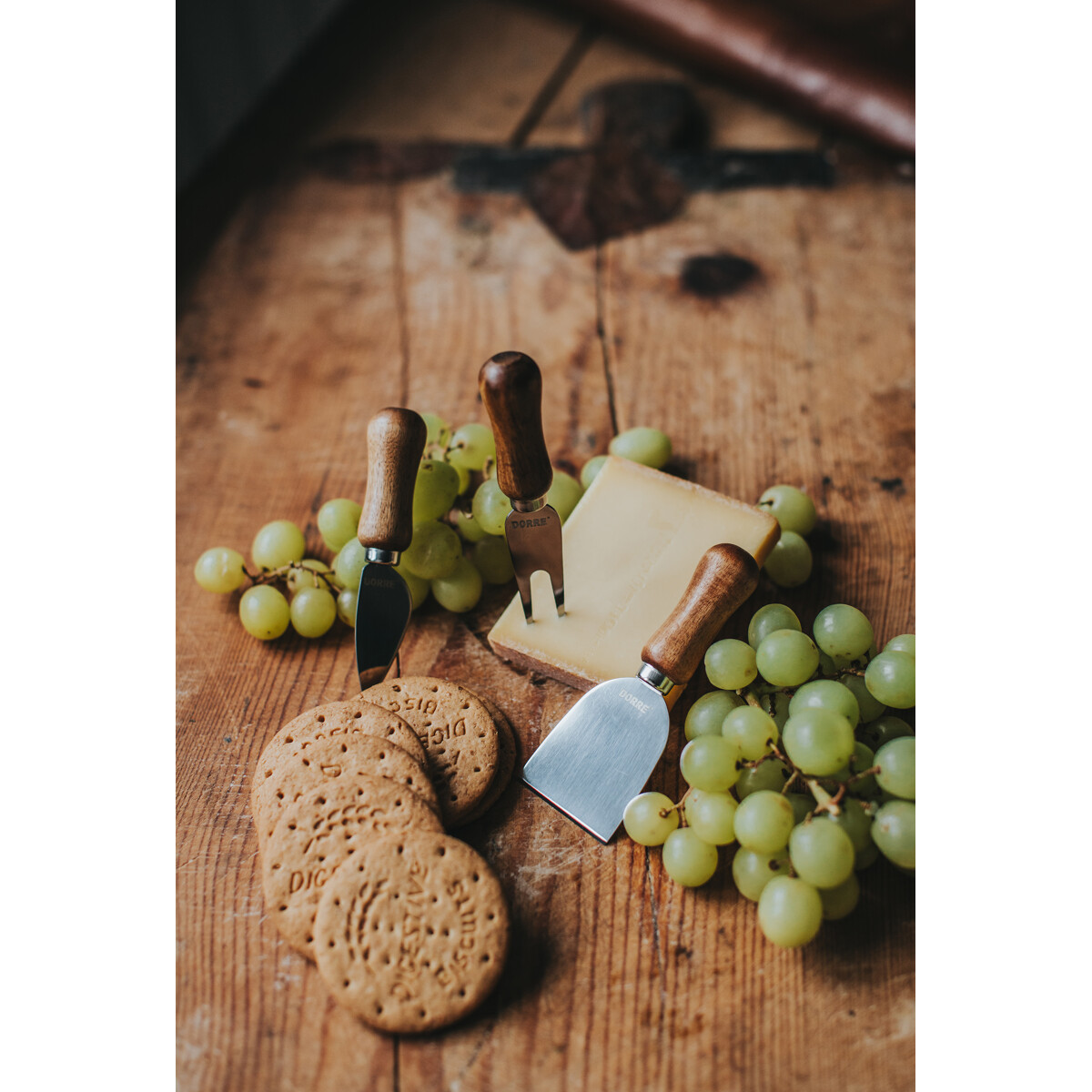 Olva juustoveitset 3-pakkauksessa yhdistävät ruostumattoman teräksen lämpimiin akaasiakahvoihin tarjoten vakaan tunteen ja hyvän tasapainon. 13 cm pituisina veitset ovat täydellisiä koville, pehmeille ja levitettäville juustoille. Tyylikäs setti, joka nostaa juustotarjottimen sekä toiminnallisuudellaan että luonnollisella luonteellaan.