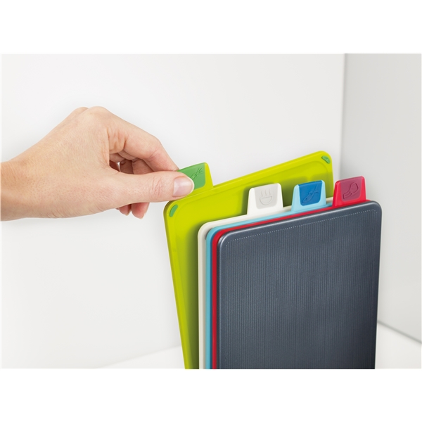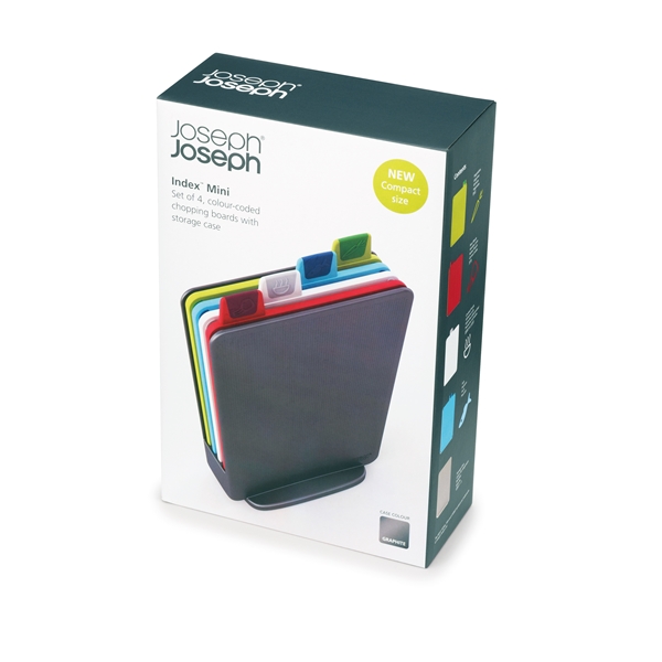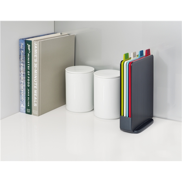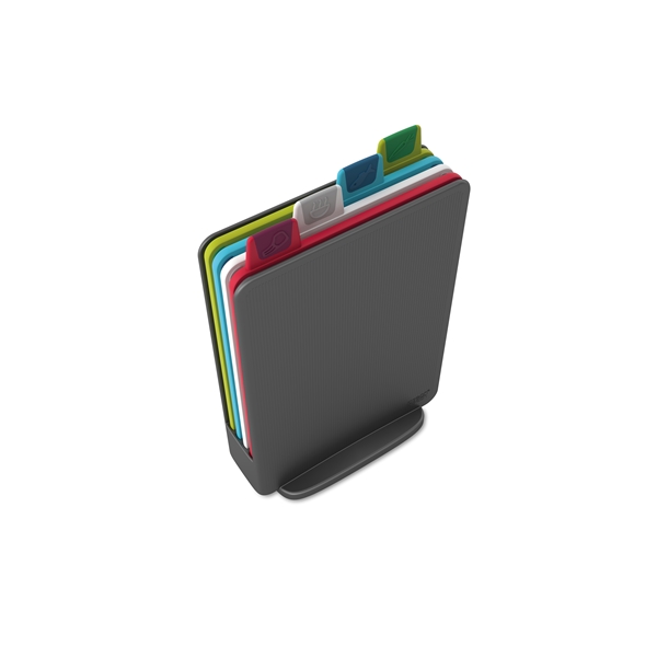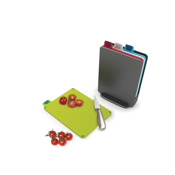 Muotoilu: Joseph Joseph Vuonna 2003 päättivät kaksosveljekset Antony ja Richard Joseph yhdistää voimansa ja perustivat Joseph Josephin aikomuksenaan luoda toiminnallisia, ongelmanratkaisevia kotitaloustuotteita. Useat tuotteet on jo palkittu kansainvälisin muotoilupalkinnoin. Kompakti leikkuualustasetti Joseph Josephilta on ideaalinen keittiöön, jossa työtila on rajoitettu ja tehtävät pienempiä. Neljä leikkuulautaa hienossa laatikossa, värikoodatut jotta vältytään tartuttamiselta. Indeksimuodossa, joten löydät helposti oikean leikkuualustan. Auttaa ylläpitämään hyvän keittiöhygienian. Kaikissa leikkuulaudoissa on liukumattomat tallat ja viistot kantit, joten nesteet ja ruoka eivät pääse valumaan reunojen yli. Saatavana useissa eri väreissä. Kestää konepesun.Koko: 15,5 cmMateriaali: Kestävää muovia