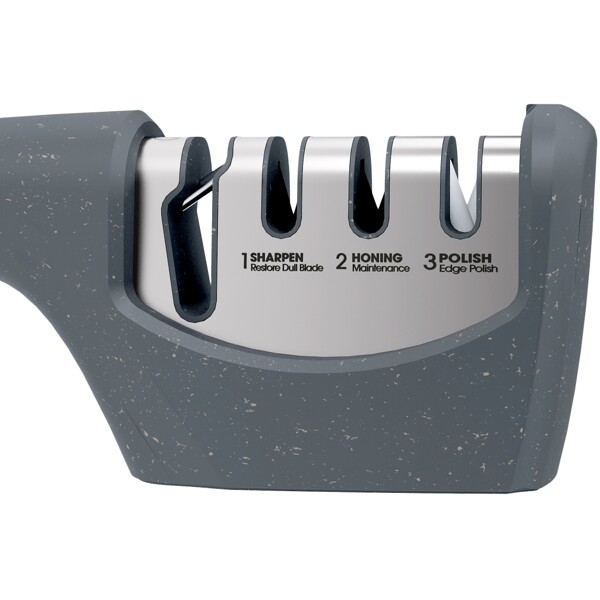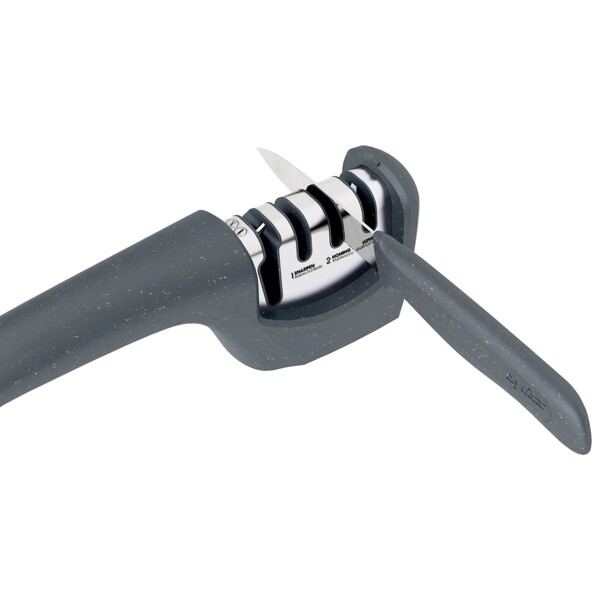 Herätä tylsät terät nopeasti eloon vain muutamalla vedolla erilaisten omistettujen teroitusurien läpi. Neljä erilaista aukkoa: 1. saksille ja sahalaitaisille terille, 2. teroitukseen, 3. hiontaan ja 4. suorien terien kiillotukseen.