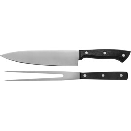 Käytännöllinen Roma-sarjan viipalointisetti, joka auttaa sinua leikkaamaan lihaa tai siipikarjaa helposti ja sujuvasti. Veitsen terä on valmistettu X50CrMoV15-teräksestä. Kahvat on valmistettu POM-materiaalista, joka on kestävä ja pitkäikäinen. Sisältää paistihaarukan ja 20 cm kokkiveitsen.