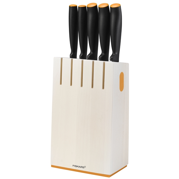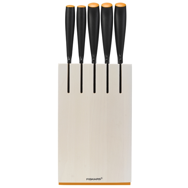Hieno ja tyylikäs musta veitsiteline, sisältää viisi keittiössä tarvittavaa veistä. Teline on tarkoitettu pystysäilytykseen, siinä on vahva magneetti yhdellä puolella, jossa voi säilyttää esim. saksia (eivät sisälly). Sopii ahtaisiin tiloihin.