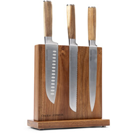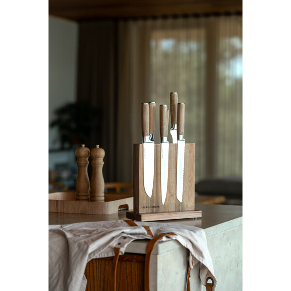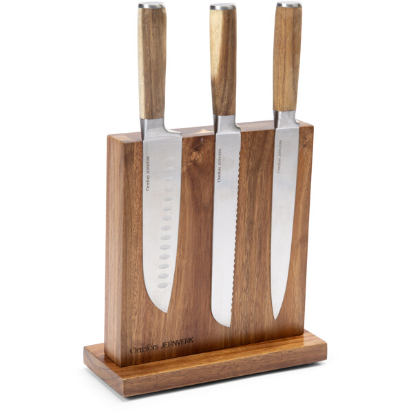 Älykäs, tyylikäs ja käytännöllinen veitsiteline, joka on valmistettu kestävästä akaasiapuusta. Telineessä on kaksi sisäänrakennettua magneettia, jotka pitävät keittiöveitset kätevästi paikoillaan - molemmilla puolilla. Käyttämällä veitsitelinettä pidät veitset terävinä ja terävinä pidempään ja ne ovat lisäksi aina käden ulottuvilla, kun laitat ruokaa.