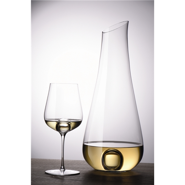 Muotoilu: Bernadotte & Kylberg Valkoviinikarahvi on Bernadotte & Kylberg kaksikon muotoilema yhteistyössä saksalaisen lasivalmistajan Zwiesel kristallilasin kanssa, tavoitteena luoda ainutlaatuinen lasikokoelma. Kokoelma on jaetta kahteen sarjaan: Air ja Air Sense. Karahvi huokuu rauhallisuutta, eleganssia ja ajatonta laadukkuutta. Valkoviinikarahvi on käsintehty erityisellä dynamiikalla, aistillisuudella ja ainutlaatuisin yksityiskohdin, jotka tekevät karahvista yksilöllisen taideteoksen. Tilavuus: 75 clMateriaali: Lasi