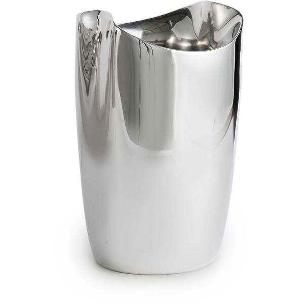 Sen antelias muoto tarjoaa runsaasti tilaa jäälle pullon ympärillä, kun taas peilikiillotettu pinta heijastaa ympäristöään ja tekee jokaisesta kattauksesta juhlavan kokemuksen. Yhtä dramaattinen tyhjänä kuin täytettynä, se on ilmentymä sekä toiminnallisuudesta että taiteellisesta suunnittelusta.
