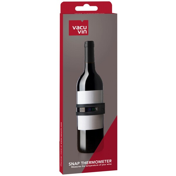 Viinin tarjoilu oikean asteisena on helpommin sanottu kuin tehty. Minkä asteista on tarjottava viini ja mikä on oikea lämpötila juuri tälle viinille? Ratkaistakseen tämän ongelman, on Vacu Vini valmistanut Klick Lämpömittarin. Se toimii kuin klick-ranneke, jonka yksinkertaisesti 'kliksautat' pullon ympärille ja odotat, että oikea lämpötila tulee näkyviin. Oikea tarjoilulämpötila on esillä lämpömittarin takapuolella.