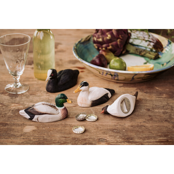 Leikkisä muotoilu ja korkea laatu kohtaavat ainutlaatuisen käsityön näissä ajattomissa käsin veistetyissä pullonavaajissa. Puiset pullonavaajat tuntuvat miellyttäviltä kädessä käytettäessä. Ne piristävät sekä kotona keittiössä että hauskana tuliaisena. Metallinen avaaja on upotettu alapuolelle eikä näy, kun pullonavaaja on pöydällä.