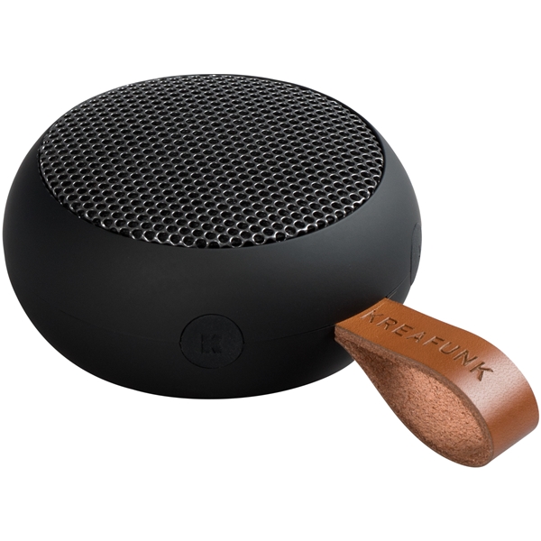 Pieni kaiutin Bluetooth-toiminnolla Kreafunkilta. aGO Mini on taskukokoinen kaiutin jonka voit ottaa mukaan mihin vaan. Kaiuttimessa on uskomaton äänentaso ja sen avulla voit soittaa musiikkia jopa 10 tunnin ajan. Sen muotoilu on pehmeä ja pyöreä ja sen nahkaisen remmin avulla voit ottaa sen mukaasi helposti. aGO Mini on saatavana useana värinä.