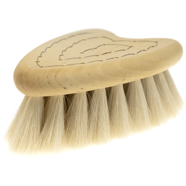 Iris Hantverkin vauvanharja perheen pienemmille. Vauvojen sydämenmuotoinen hiusharja. Vuohenkarva on pehmeää ja sen avulla vauvan tukkaa on helppo harjata. HUOM! Ei tule käyttää märkiin hiuksiin, sillä vuohenkarva takkuuntuu kastuessaan.