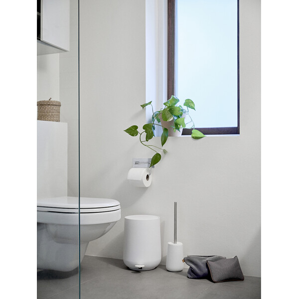 Yksivärinen WC-harja, joka on valmistettu kivitavarasta ja teräksestä palkitusta Nova-kylpyhuonesarjasta, huokuu ylellisyyttä ja kylpylätunnelmaa vastustamattomalla soft touch -pinnallaan ja pehmeällä muotokielellään, joka miellyttää sekä silmää että sormia.
