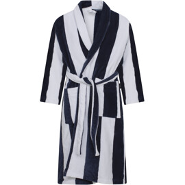 Ylellinen aamutakki/kylpytakki unisex-mallissa, jossa on hienostuneet raidat, leveä kaulus ja huolellisesti tehdyt yksityiskohdat. Nauti pehmeästä ja paksusta korkealaatuisesta puuvillaveluurista.