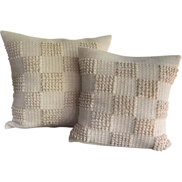 Lisää hienovaraista hienostuneisuutta ja rikasta tekstuuria kotiisi kauniilla käsintehdyllä tyynynpäällisellämme Thaimaasta. Tämä tyynynpäällinen, jossa on tyylikäs norsunluunvärinen ruutukuvio, tuo hienostuneen, kodikkaan ja kutsuvan tunnelman mihin tahansa sohvaan, nojatuoliin tai sänkyyn. Saatavana 2 koossa. Koko: 50 x 50 cm Materiaali: 100% käsinkudottua puuvillaa. Design: Klassinen norsunluunvärinen ruutukuvio, jossa on erottuva teksturoitu kudos, tarjoaa ajattoman ja monipuolisen estetiikan. Käsintehty Laatu: Jokainen päällinen on huolellisesti valmistettu ja esittelee aitoa käsityötaitoa ja hienovaraisia vaihteluita, jotka tekevät jokaisesta kappaleesta ainutlaatuisen. Monipuolinen Sisustus: Ihanteellinen minimalistisiin, skandinaavisiin, moderneihin tai perinteisiin sisustuksiin, ja parantaa tilaasi hienovaraisella eleganssilla.