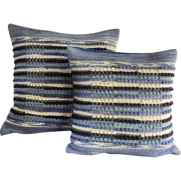 Vie merellisen rauhoittava olemus kotiisi kauniilla käsintehdyllä tyynynpäällisellämme Thaimaasta. Rauhallisilla sinisillä ja valkoisilla sävyillä sekä rikkaalla, teksturoidulla merikangaskuviolla tämä päällinen tuo rannikon viehätysvoimaa ja kodikasta mukavuutta mihin tahansa olohuoneeseen. Saatavana 2 koossa. Koko: 50 x 50 cm Materiaali: 100% Käsinkudottu Puuvilla. Design: Rauhoittava sininen ja valkoinen paletti, jossa on monimutkainen, teksturoitu merikangaskuvio, joka herättää rauhallisen rannikkotunnelman. Käsintehty Laatu: Jokainen päällinen on huolellisesti valmistettu ja esittelee aitoa käsityötaitoa ja hienovaraisia vaihteluita, jotka tekevät kappaleestasi todella ainutlaatuisen. Monipuolinen Sisustus: Täydellinen rannikko-, boheemi-, moderniin tai jopa minimalistiseen sisustukseen, ja se parantaa helposti sisustustasi.