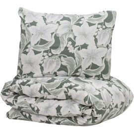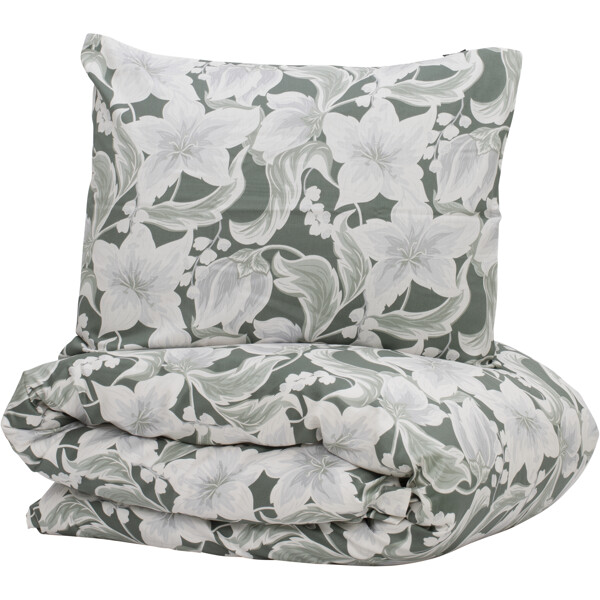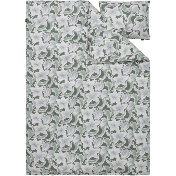 Vuodevaatesetti, jossa on suurikukkainen kuvio pehmeissä harmaasävyissä, täydellinen makuuhuoneeseen. Valmistettu puuvillasatiinista, joka antaa ylellisen tunteen ihoa vasten.
