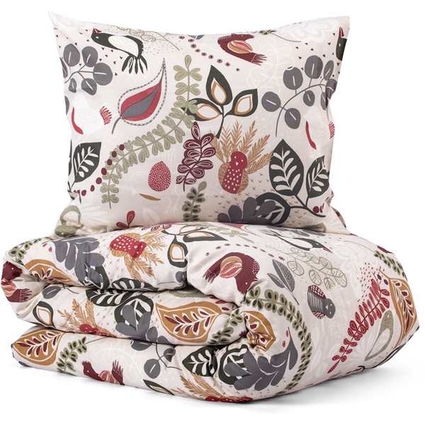 Leikkisästi kuvitettu vuodevaatesetti hienointa satiinia, pakkaukseen kuuluu tyynyliina ja pussilakana.